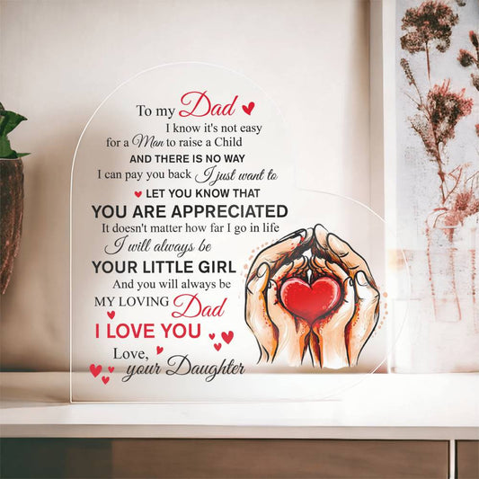 Dad You Are Appreciated Heart Shaped Acrylic Plaque
